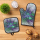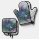 Purple Green Flower Modern Abstract Art Fractal Oven Mitt & Pot Holder Set