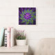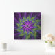 Purple Green Flower Modern Abstract Fractal Art Square Wall Clock
