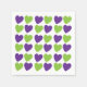 Purple Green Love Hearts Pattern Party Napkins designed by Nisha Prabhu. These Purple Green Love Hearts Pattern Party Napkins are the perfect addition to any party or event with a love theme. The napkins feature a vibrant combination of purple and green colours, creating a striking and eye-catching design. The pattern is filled with love hearts, adding a touch of romance and sweetness to your party decor. Whether you're hosting a Valentine's Day celebration, an anniversary party, or simply want to add a touch of love to your event, these Purple Green Love Hearts Pattern Party Napkins are the ideal choice.