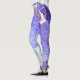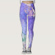 Purple Green Pink Floral Abstract Art Leggings feature shades of purple, lavender, lilac, pink, green and white abstract art with floral design mixed with stripes and cursive text.