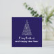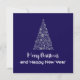 Purple greeting card wishing a Merry Christmas and a Happy New Year written in English in white font with a silver Christmas tree with stars and Christmas balls - editable text