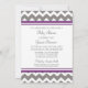 Personalised baby shower invitations in elegant and modern dark plum purple, dark charcoal grey and white fun chevron zigzags pattern. Customisable with your text, contact us to request a colour change.