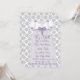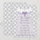 Pretty lavender purple ruffle dress with purple pearls and bows on a white and grey damask background baby girl lavender purple and grey shower invitation. Add your details to the front and back by adding your event details, font style, font size & colour, and wording. Some graphics graphics©delightful-doodles.