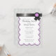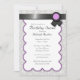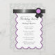 Beautiful party invitations with a heather grey & white damask pattern and a black ribbon design with purple at the top.