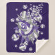This cute girl's volleyball themed Sherpa fleece blanket features an "explosion" of purple, grey and white volleyballs in varying sizes and purple and grey star shapes and white polka dots on the purple star, all on a customisable darker purple background - the volleyballs' purple and grey panels are blended with a girly, floral kaleidoscopic pattern - customise with player's name and jersey number - katz_d_zynes