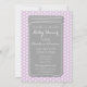Personalised baby shower invitations in elegant and modern light purple, dark charcoal grey and white hearts pattern with a cute mason jar illustration. Customisable with your text, contact us to request a colour change.