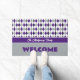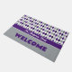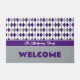 Oversized elegant argyle pattern in school colours of dark green and bright yellow set the backdrop for this design. Welcome in large letters and your family name included. Great idea for a house-warming! Design comes in maroon and grey, burnt orange and grey, red and black, green and black, orange and navy, green and yellow, and purple and grey. Matching products available.
