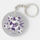 This fun girl's soccer themed keychain features an "explosion" of varied size purple, grey & white soccer balls and grey & purple star shapes - the purple star has a tiny pattern of white polka dots - customise with the athlete's name & jersey number, front & back - the purple & grey background colours are customisable - by katz_d_zynes