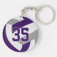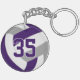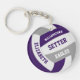 This team colours volleyball themed keychain for boys or girls features a realistic looking purple, grey and white volleyball upon which you can customise the player's name, jersey number and court position, plus school or club name and mascot name in a varsity letter style font - by katz_d_zynes