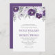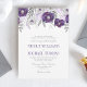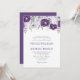 Elegant purple and silver grey watercolor floral wedding invitations. A formal script font is paired with a modern serif font for a formal invite design.