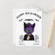 Purple Halloween Cat with Bats and Skeletons Postcard