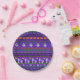 Purple Halloween party decor, knitting pattern on Paper Plate