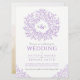 Purple hand-drawn growing spring leaf botanical art wedding invitations. Simple leaf design circling your own monogram initials design. In pretty shades of purple and grey on white. Other colours and matching items are available. © Original leaf drawing and design by Sarah Trett for www.mylittleedenweddings.com on Zazzle.