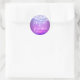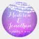 Purple Ombre Background with hanging fairy string lights. Custom Classic Round Sticker personalised with your name and wedding date. Use on wedding favours, or as envelope seals.