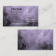 Custom business cards with grungy letters and a spooky Halloween sky with misty trees along a dark haunted road, gothic ravens and a cloudy full moon with a violet purple tint. Click Customise It to change fonts, sizing, even save your design for later.