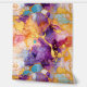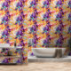 A seamless pattern featuring alcohol and ink effects with dominant shades of purple and yellow, accented by tiny blue and pink details. The design blends vibrant and subtle hues, creating a dynamic and artistic visual.