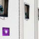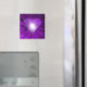 Modern design with a shining, sparkling purple and white heart on a glowing purple, white and black background. Magnet with a purple, black and white customisable design for you to personalise with your own text, images and ideas. Created by Jess Perry using original photographs and digital techniques.