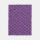 This fleece blanket features a repeating pattern of two-tone purple hearts on a purple background.