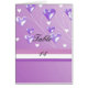 A pretty purple design featuring purple floating hearts and a border of stripes. They accent the 'table number". Add bride and grooms name and wedding date inside as desired.