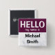 Purple hello my name is custom pin button. This name tag has a purple background with a modern white marble pattern for your personalised name. Use this easy template to customise the text and name. Great for reunions, business meetings, church groups, study groups, training classes, gatherings, parties, employees, etc...