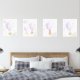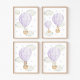 Add the finishing touches to your baby’s nursery or child’s bedroom with these gorgeous art prints! Design features purple hot air balloon, animals (bunny, bear, elephant), moon, clouds and stars.
