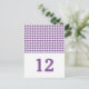 Simple yet elegant Houndstooth Table Number Postcard with a trendy purple and white houndstooth pattern background. Easy to customise with your wedding details. For more customisation options, click on the Customise It button.