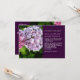 Beautiful and vibrant purple hydrangea adorn this two-sided wedding invitation. Customise to your liking by selecting different background colours or font colours. Nice for a Spring or Summer wedding or tropical/island destination. See our other products in our Wedding - Hydrangea Collection.