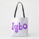 A beautiful purple tote bag, this design features "Igbo" written in fun purple font on a white background. Add your text, name, image, etc. Order yours today!