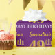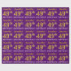 This wrapping paper design features a message like "Samantha’s 49th BIRTHDAY!", with the "49th" having a faux/imitation gold-like colour appearance. The name can be customised, and the background is coloured purple. It could perhaps be used when wrapping gifts being given for somebody’s forty ninth birthday. [~Z0000182]