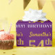 This wrapping paper design features a message like "Samantha’s 54th BIRTHDAY!", with the "54th" having a faux/imitation gold-like colour appearance. The name can be personalised, and the background is coloured purple. It could perhaps be used when wrapping gifts being given for somebody’s fifty fourth birthday. [~Z0000182]