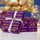This wrapping paper design features a message like "FirstName’s 56th BIRTHDAY!", with the "56th" having a faux/imitation gold-like colour appearance. The name can be personalised, and the background is coloured purple. It could perhaps be used when wrapping gifts being given for somebody’s fifty sixth birthday. [~Z0000182]