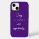 Purple iPhone case. Says in white colour: Every moment is a new opportunity.