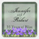 This beautiful and elegant design, called Purple Iris Wedding Anniversary, has a beautiful floral inspired design. The background is a blurred green background with an almost marble pattern. Centred towards the top is an inset of white that is faded to let the background show through just a touch. This has a thin purple border. At the bottom there are seven purple iris flowers - a beautiful floral accent. Personalise it any way you like. Perfect for a vintage style or or garden wedding anniversary party.