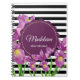 Purple Iris Botanical Black White Stripes Pattern Notebook