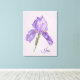 This beautiful canvas wall art has my hand drawn and coloured picture of an old fashioned purple Bearded Iris. The yellow fuzzy stamens that line the petals are what gives them the distinction of being "bearded". The old nickname for this flower was Flag. Irises come in many different varieties and colours, but the purple one is the most common. The botanical name for Iris is Germanica which means Rainbow.