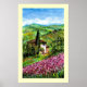 PURPLE IRIS FIELDS IN GREEN TUSCANY LANDSCAPE POSTER