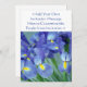 Colour floral photograph of purple iris flowers in a flower vase. Personalise this purple irises flower invitation with your own message and images to make your own special flower invites.