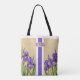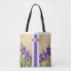 Purple Iris Flowers Monogram Faux Burlap Jute Tote Bag