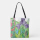 Purple Iris Pink Roses Large Watercolor Flowers Tote Bag
