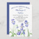 A lovely watercolor rehearsal brunch or dinner invitation featuring spring flowers, purple iris, on a white background.