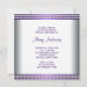 Elegant white and purple with rhinestone trim woman's 50th birthday party invitation.