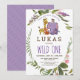 Purple Jungle Safari Animal 1st Birthday Invitation