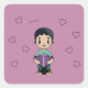 This design features an illustration of a cute boy holding a heart-shaped gift box and the text xoxoxo" You can customise the text. With default text it makes a great sticker for love related gifts.