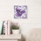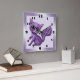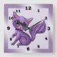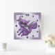 My Little purple kitten with his little purple bow is trying his best to point to the correct time. Shown on a light lavender background with a shiny purple frame and large black numbers. Click on the "Customise it!" button for design options. Artwork and design by Karlajkitty