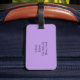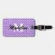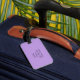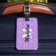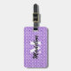 Purple knitting background with monogram. Personalised monogrammed letter and name tag for suitcases and bags. Elegant typography design. Great gift for family or friends.