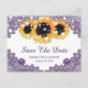 Purple Lace Yellow Sunflower Wedding Save The Date Announcement Postcard