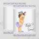 Lavender and grey baby shower thank you card with adorable vintage princess baby girl wearing lavender purple ruffle pants and slippers with a silver crown and purple bow in her hair on an elegant lavender and grey lace background. This cute lavender and grey baby shower thank you card is easily customised by adding your message, or leave blank to add your handwritten message when they arrive.