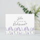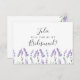 Purple lavender Bridesmaid Card. Designed with purple hand painted lavender flowers with watercolor type stylising. This is a country style design for spring, summer and outdoor weddings. Customise this design with your name & wedding date on the back, your bridesmaid's name on the front and any other custom message you would like to include! The background colour is set to white, however you can choose a fill colour of your choice.