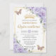 Purple Lavender Floral Butterfly Gold Quinceanera Invitation