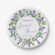 Bridal Shower Paper Plate. This design features a watercolor illustration of Purple lavender flowers and eucalyptus foliage. Personalise with your name and date. Text "Bridal Shower" is written in a script font.